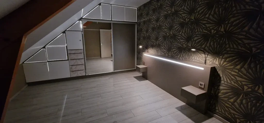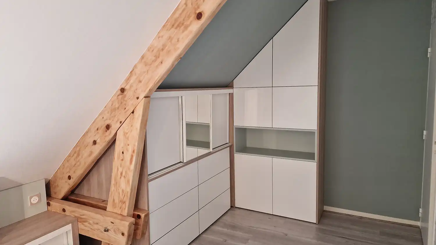 Conception sur-mesure pour exploiter au mieux les volumes atypiques (combles, angles, murs en retrait…).
